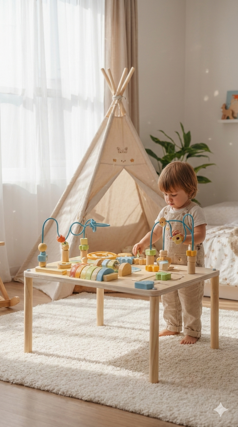 Table d’Activités Montessori en Bois – Éveil Sensoriel Bébé